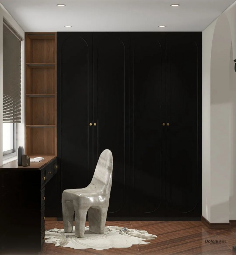 黑色柜体如同首饰店的精美橱窗,让衣物安然栖居