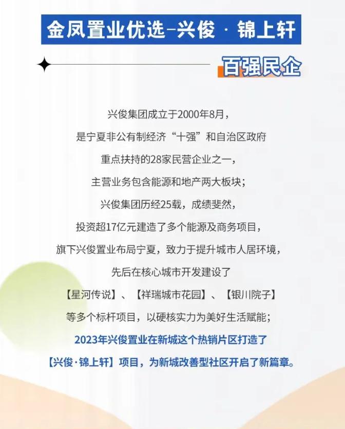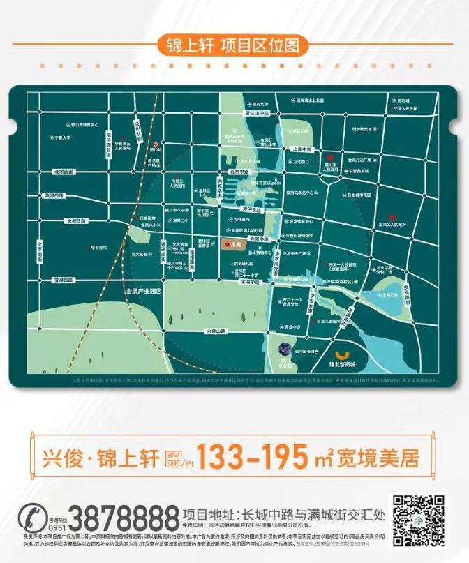 兴俊·锦上轩鼎立金凤区新城热土之上,坐拥一横(长城路)两纵(亲水大街、满城街);紧靠典农河、华雁湖公园、森林公园等生态资源;历经多年发展,区域教育、医疗、商业等市政生活配套醇熟,区域居住氛围浓厚,繁华而不失静谧。