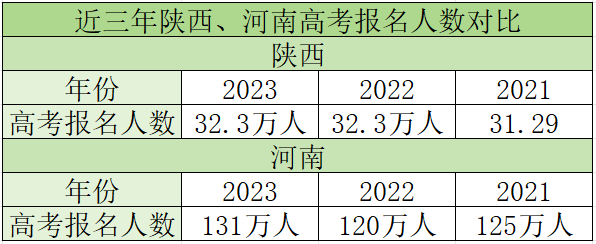 陕西的考生人数比河南少,但录取人数相差不大,这样的话,被录取几率就大得多,竞争压力相对较小。近年来,河南的考生数量远多于陕西省的高考人数,并且河南高考人数长期占据全国第一,可以看出河南高考难度堪比困难模式。