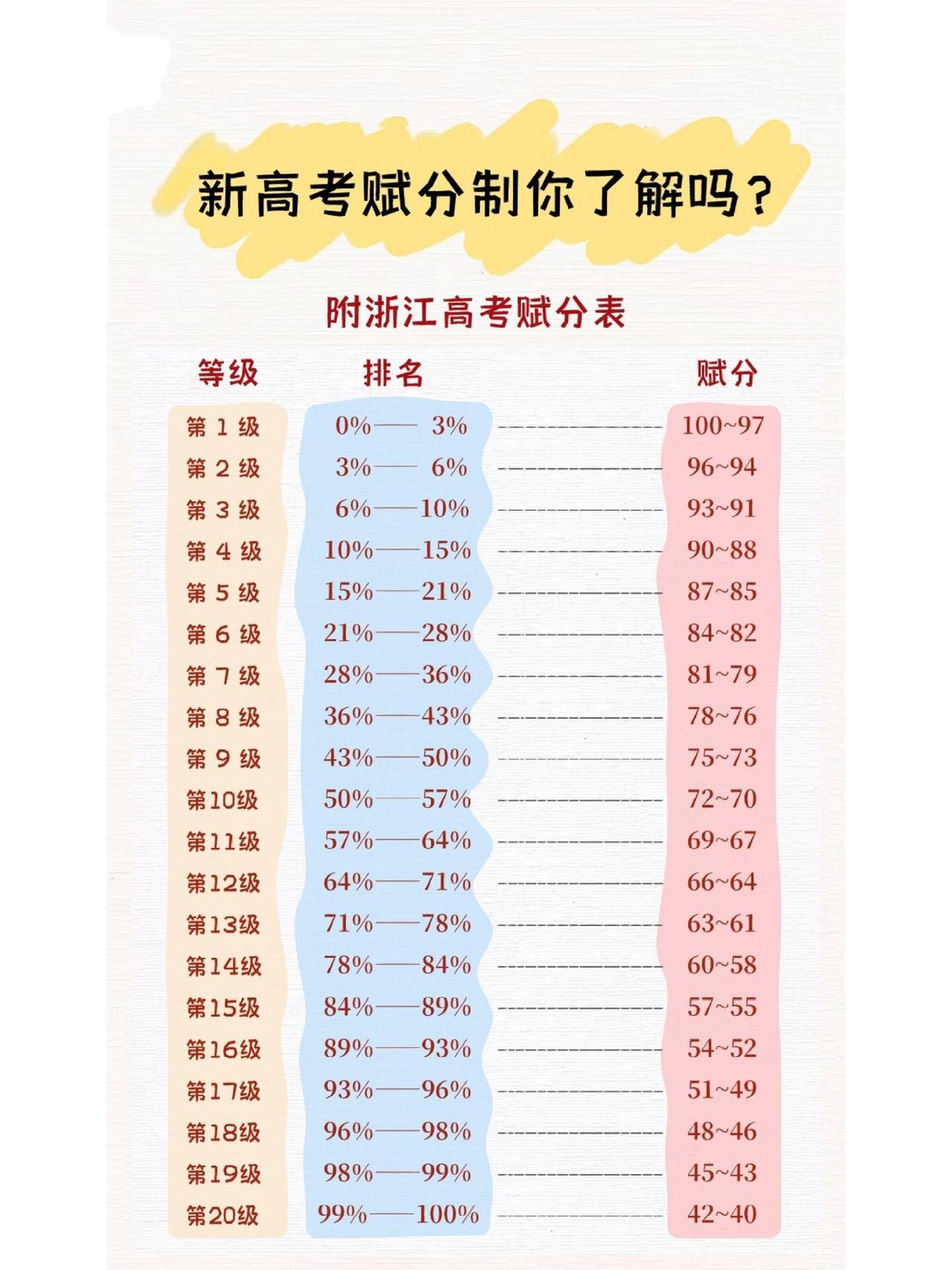2024年新高考赋分成绩和原始成绩对照表(含计算公式)