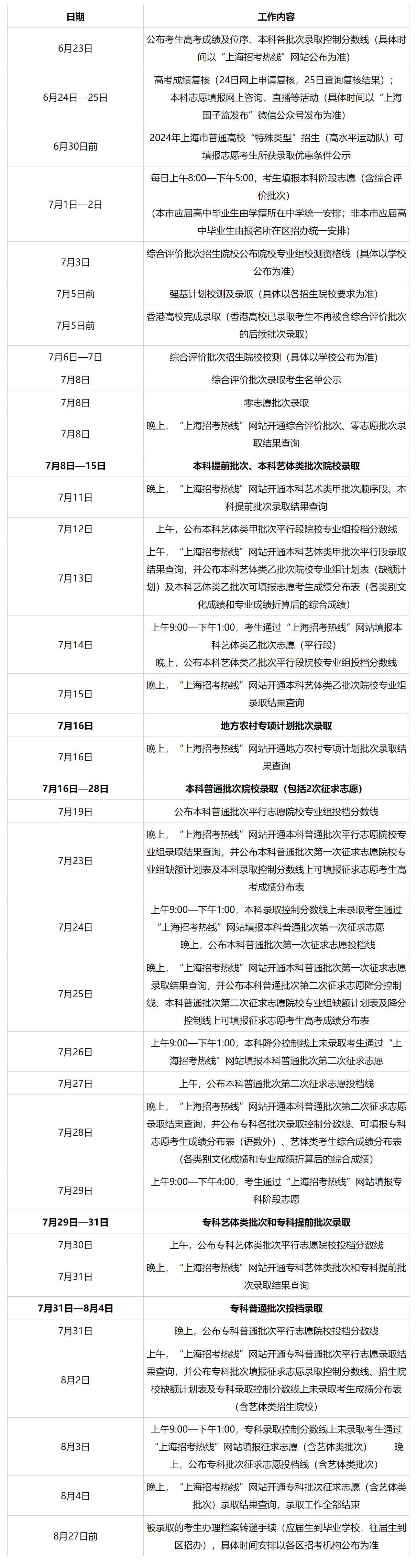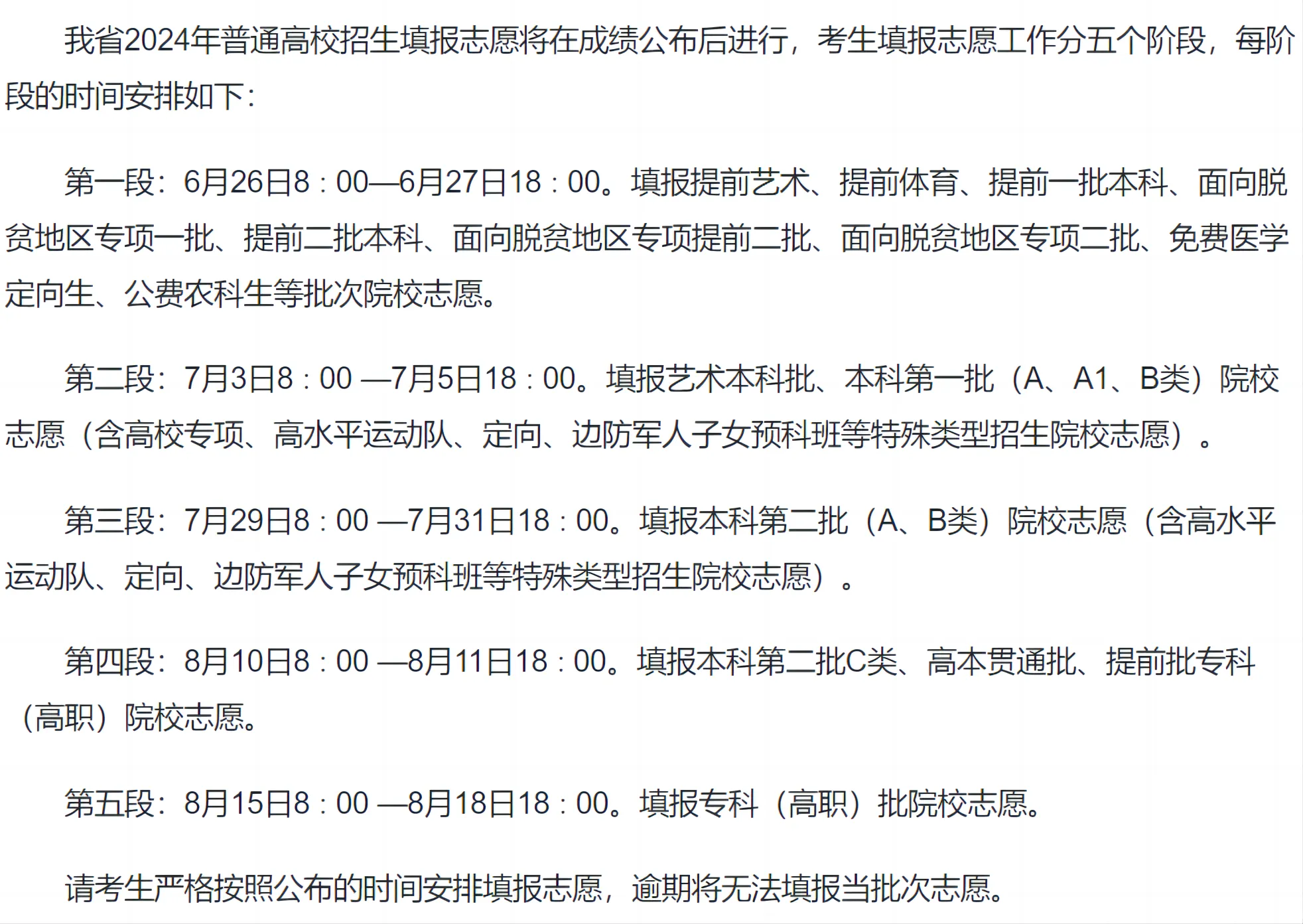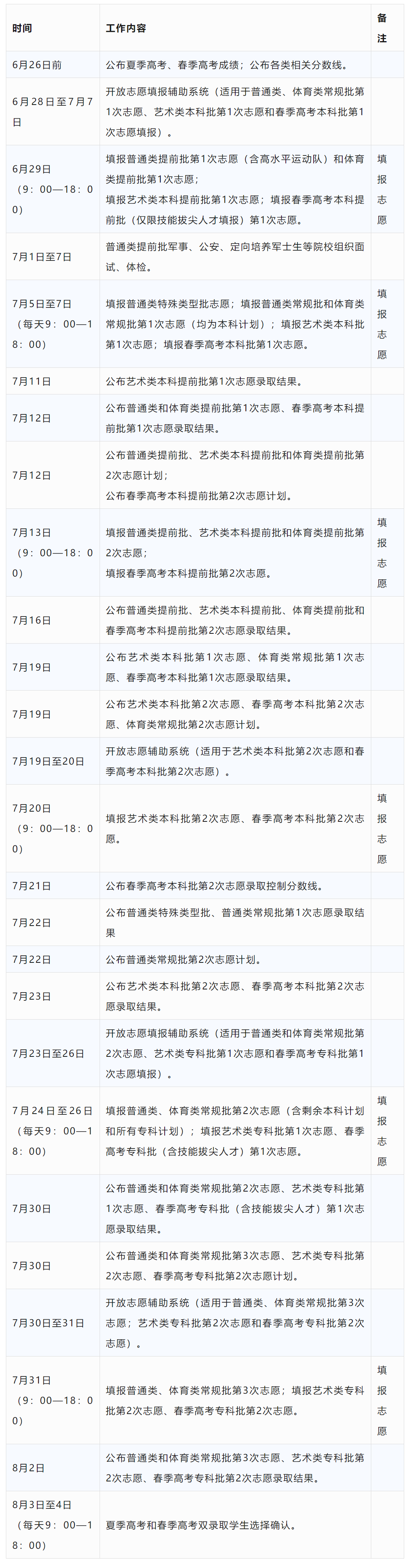 2024全国高考志愿填报+录取时间一览表(含提前批、本科、专科)