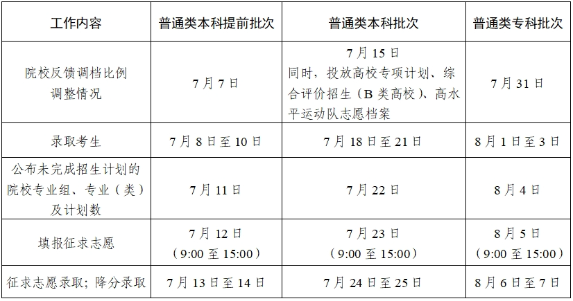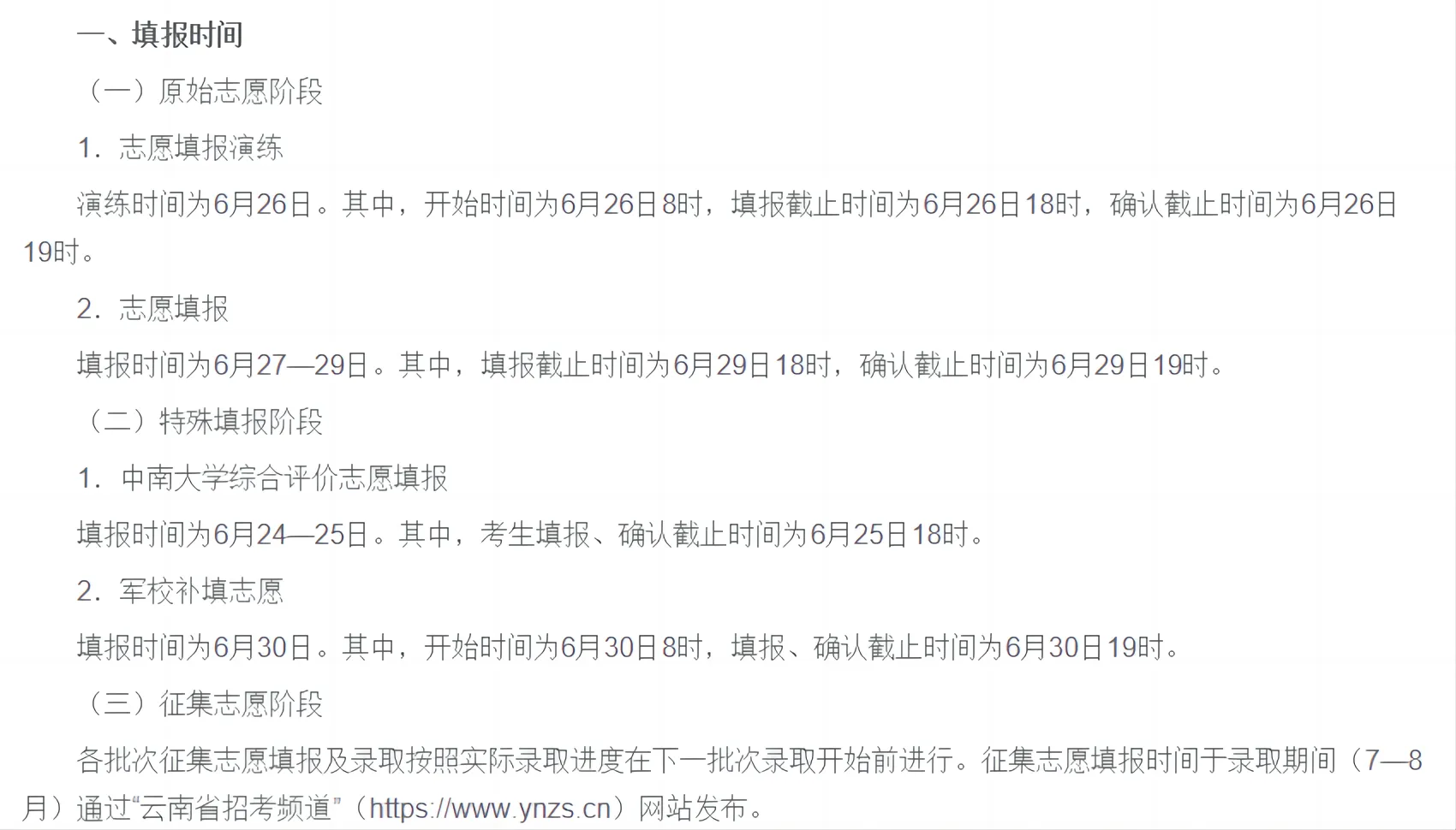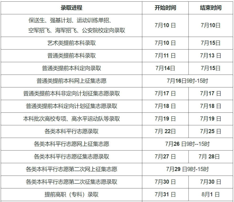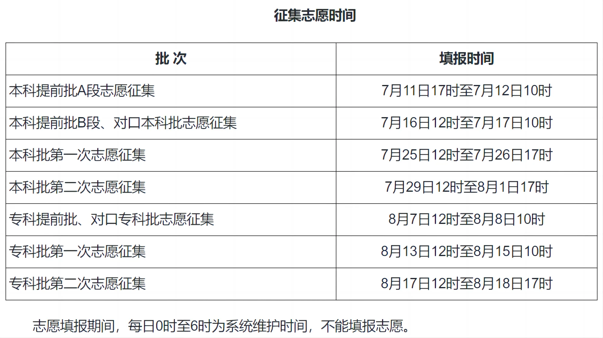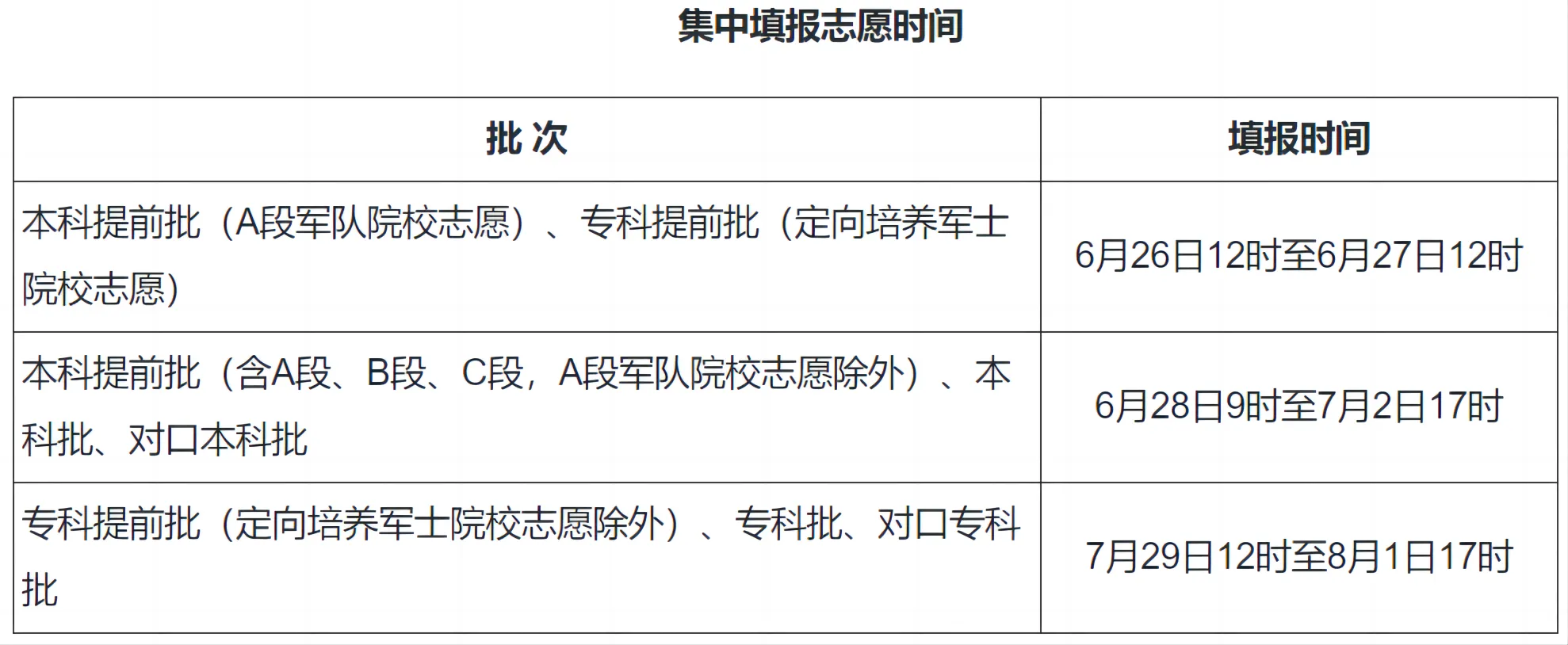 6月29日10:00至7月5日22:00填报所有批次志愿。
