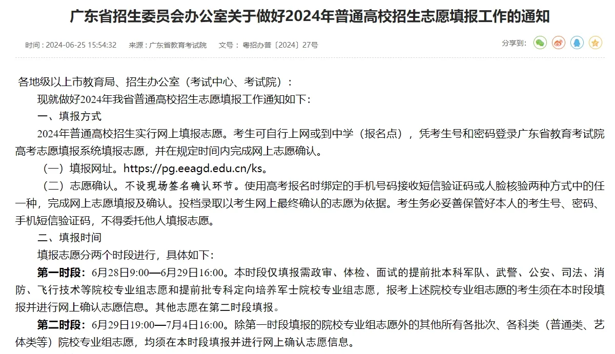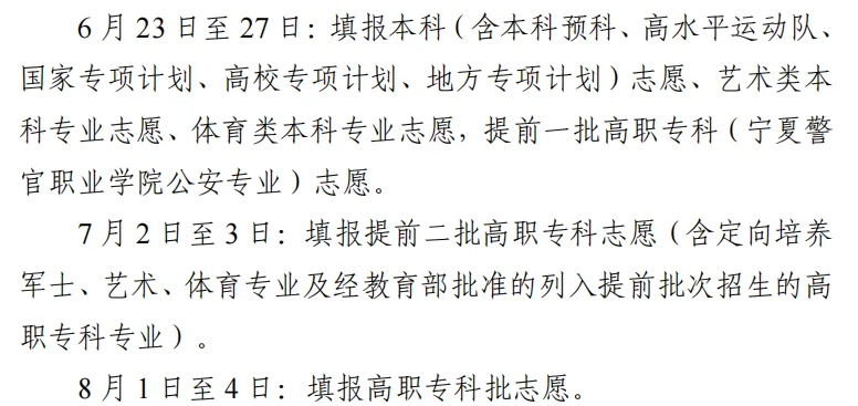 6月27日9:00—6月30日18:00填报所有类别各批次招生的志愿