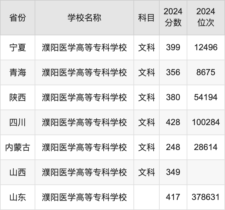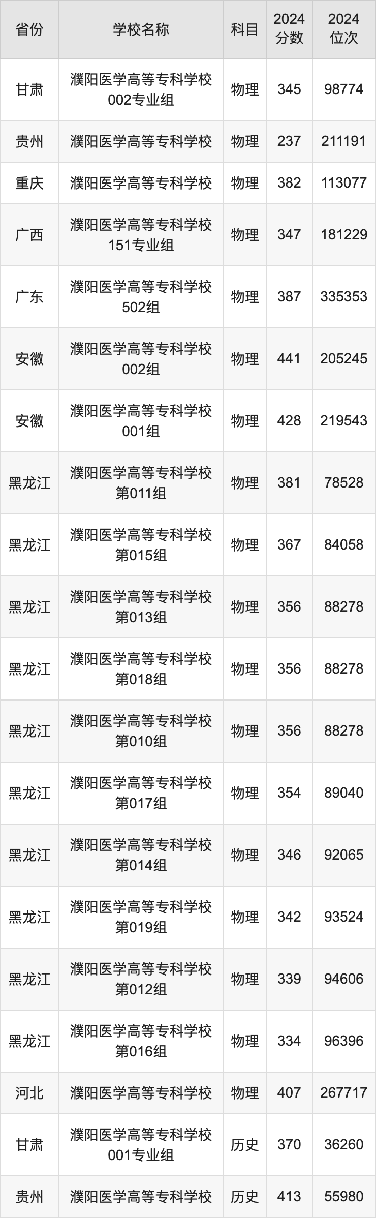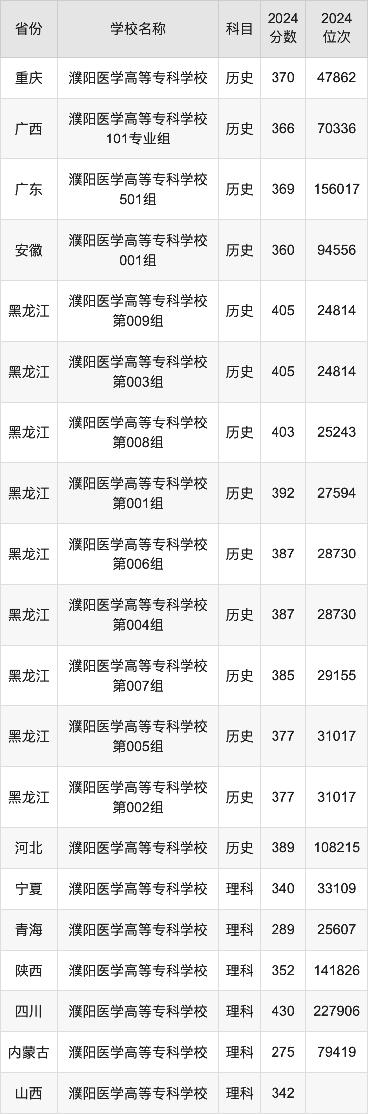 2024濮阳医学高等专科学校录取分数线汇总:全国各省最低多少分能上
