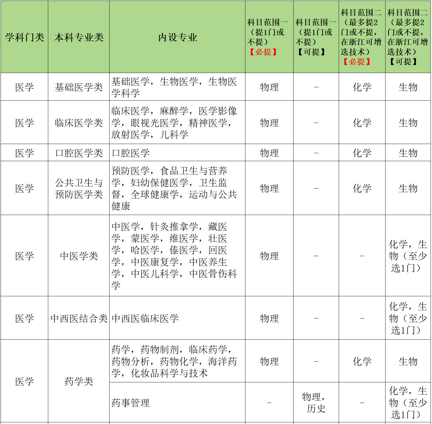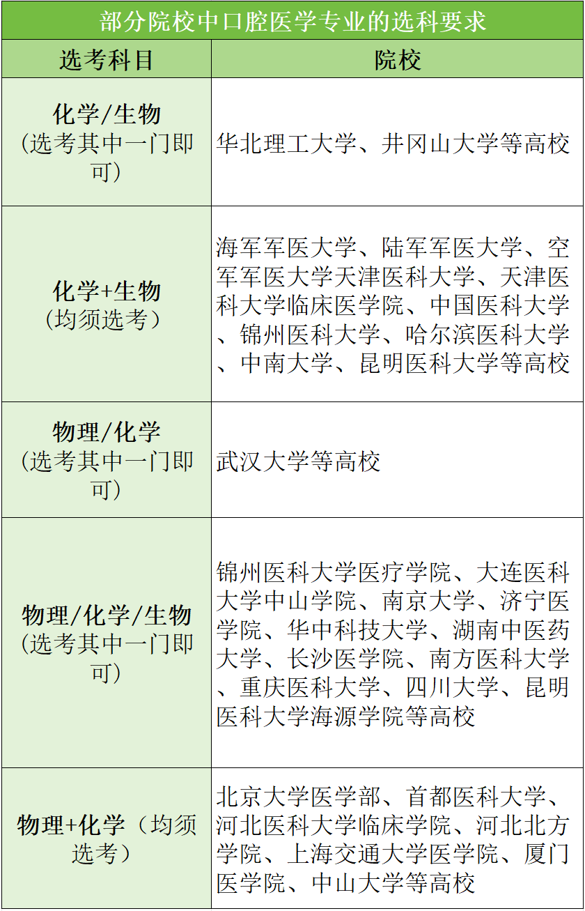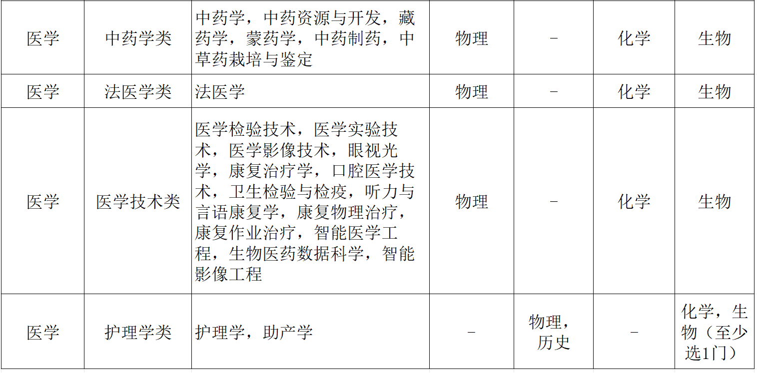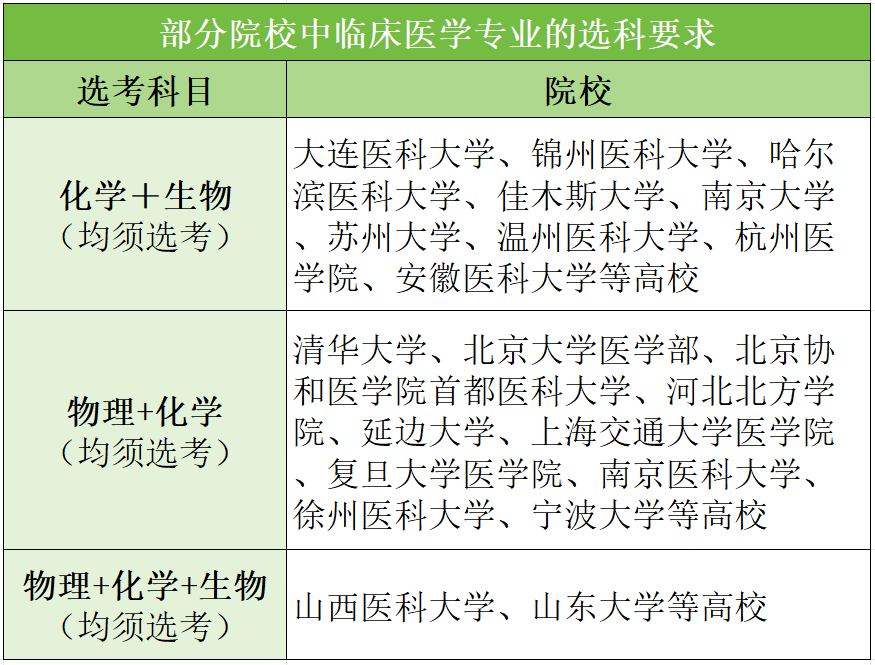 下方表格是根据教育部选科要求指引整理出的医学类专业所需选择的科目,可供想要报考医科大学的学生参考。
