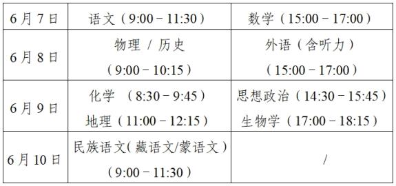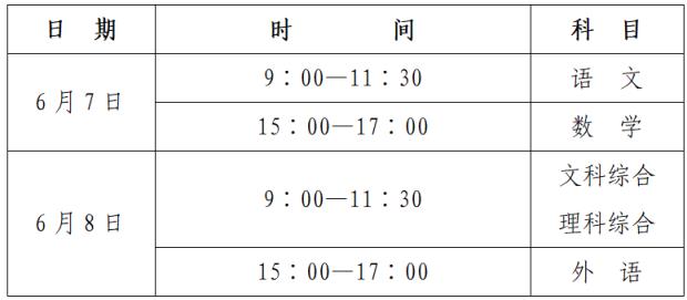 2024年高考时间及各科目考试安排汇总(全国31省市区)