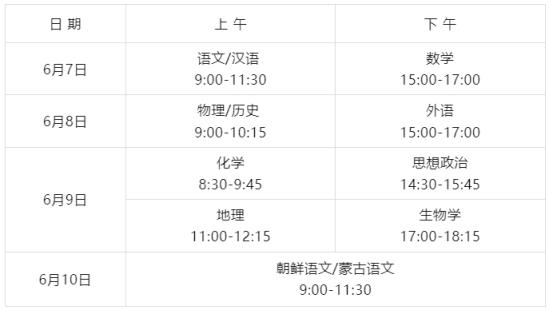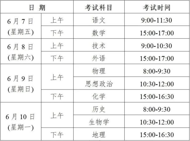 “3+1+2”新高考地区高考时间从6月7日开始,最晚6月10日结束,语文和数学安排在6月7日进行考试;物理/历史和外语安排在6月8日进行考试;化学、地理、政治、生物安排在6月9日进行考试,考生在四门中选择两门,按照规定时间进行考试;部分地区考民族语文安排在6月10日进行。