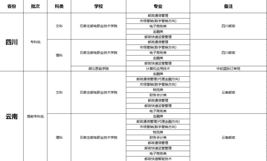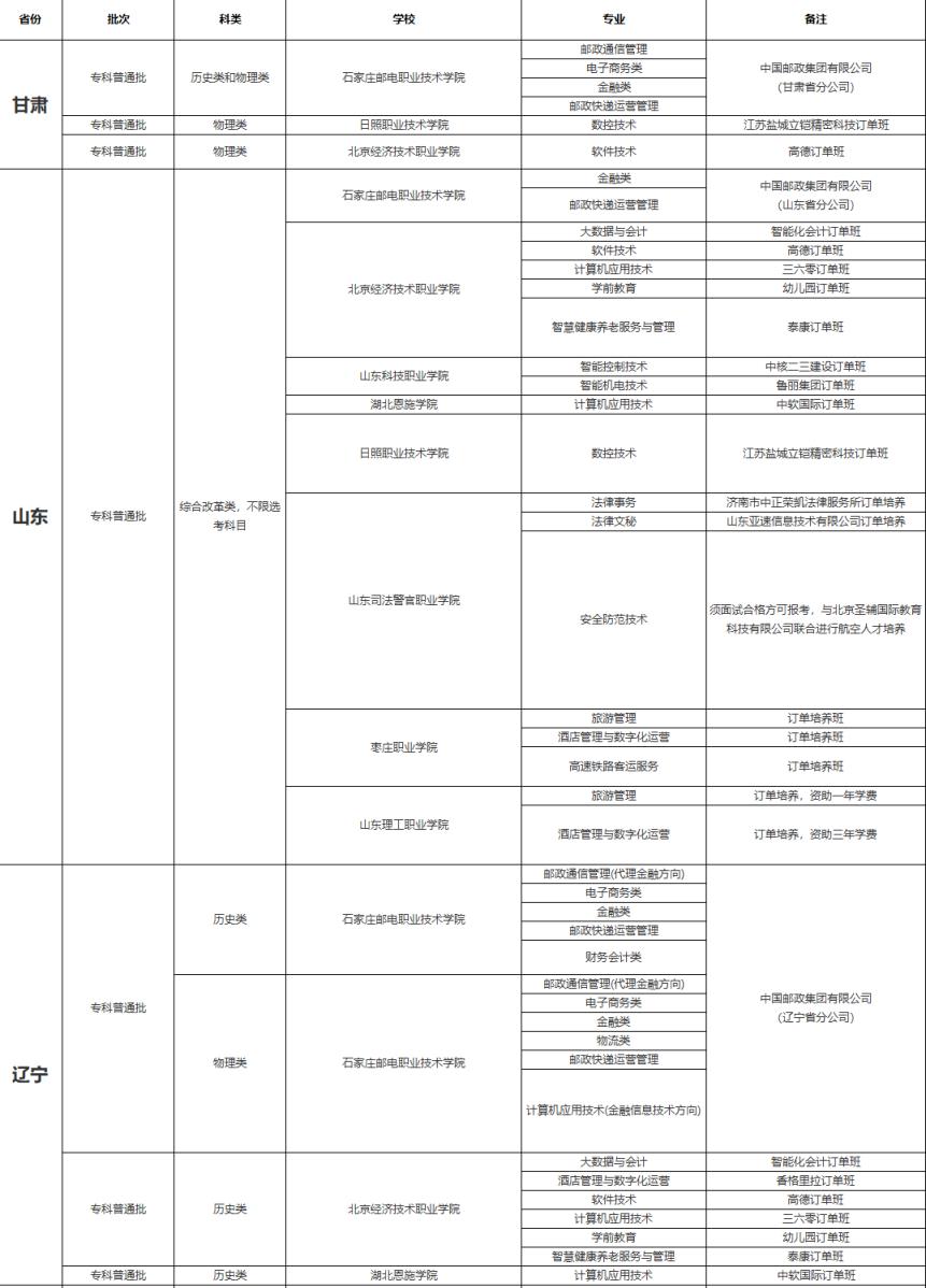 | 石家庄邮电职业技术学院 | 金融类 | 河北邮政 |