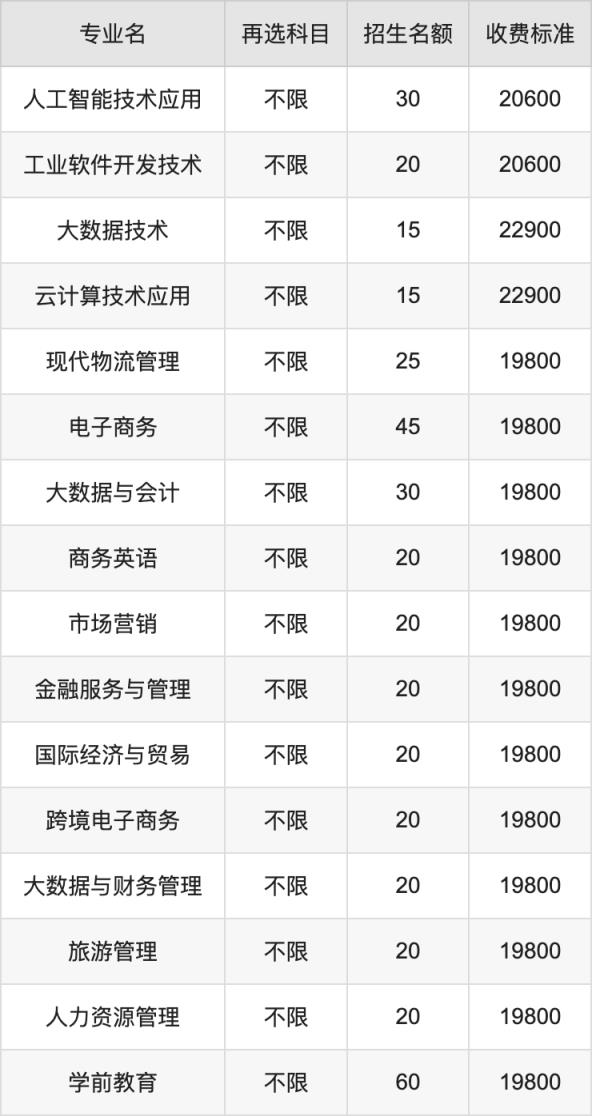 | 专科高职批 | 物理 | 大数据与财务管理 | 20 |