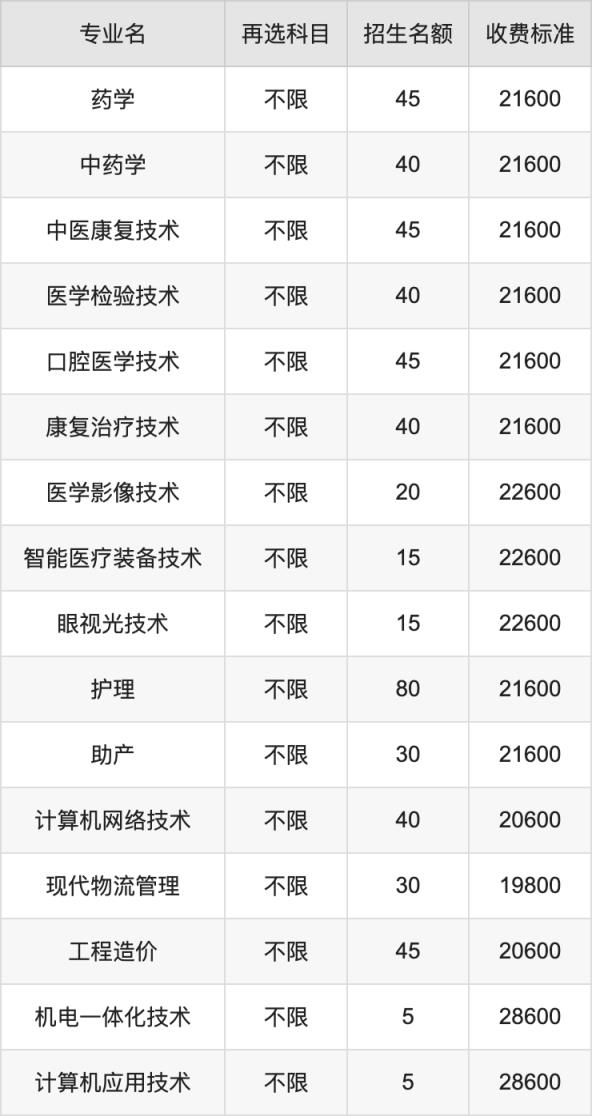 | 专科高职批 | 物理 | 口腔医学技术 | 45 |