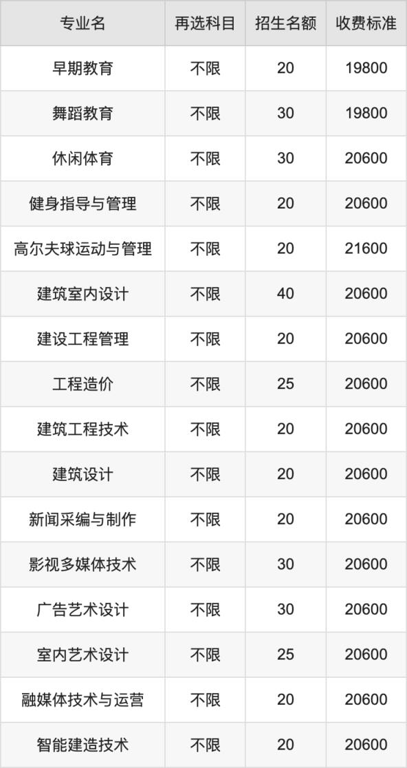| 专科高职批 | 历史 | 旅游管理 | 20 |