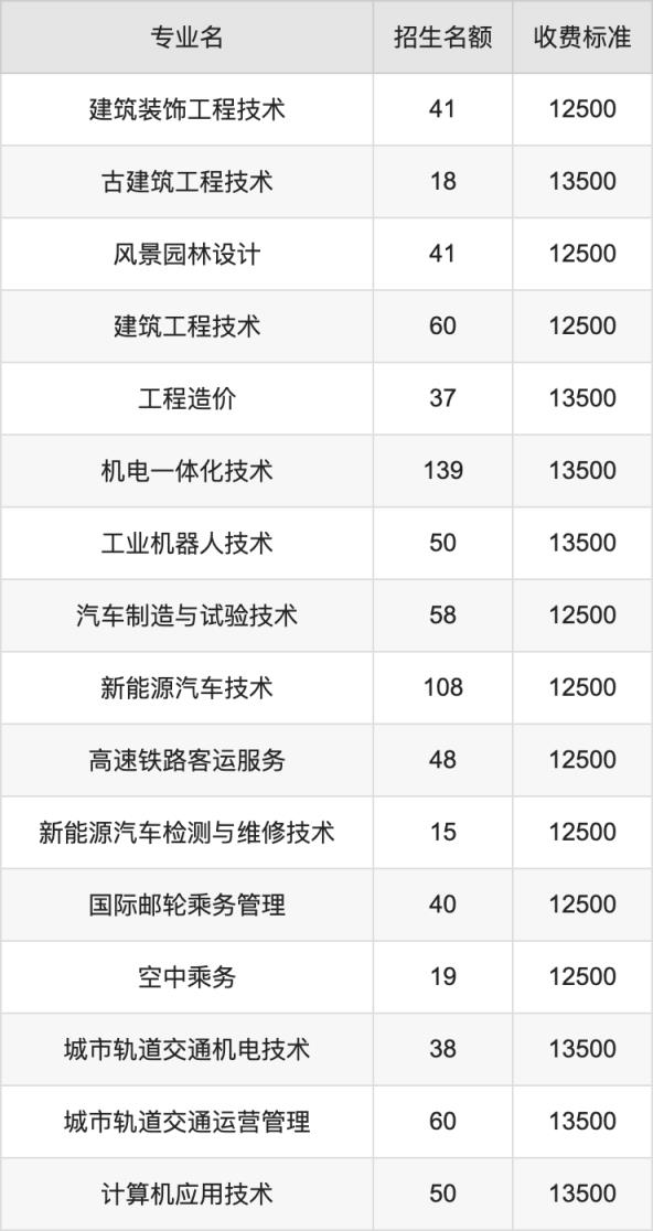 郑州信息工程职业学院在文科高职高专批招生的各个专业,每年的学费是12500元-13500元。招生人数最多的专业是机电一体化技术,2024年招139人,学费是13500元。