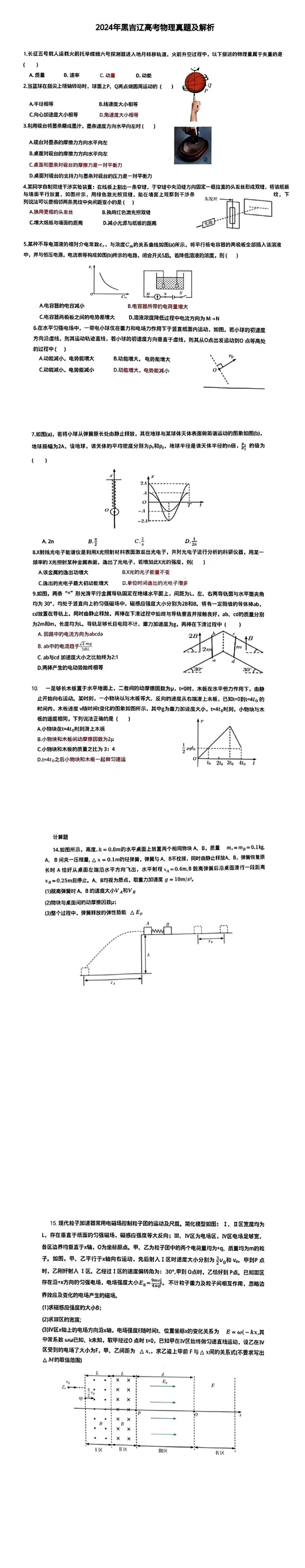 2024年高考物理黑龙江卷考试结束后,本文将第一时间公布相关的真题试卷及答案!