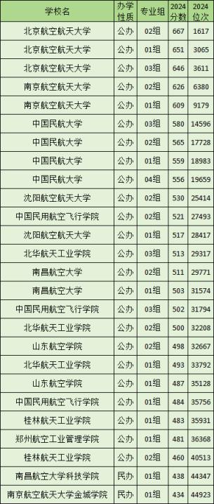 2024年全国各航天航空大学录取分数线排名一览表如下: