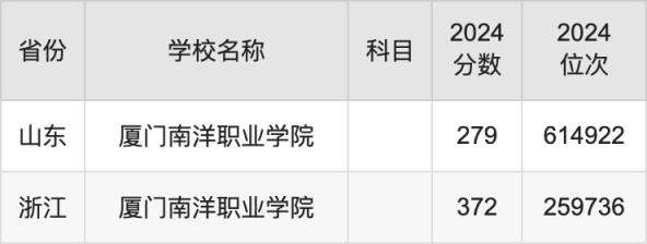 2024厦门南洋职业学院录取分数线汇总:全国各省最低多少分能上