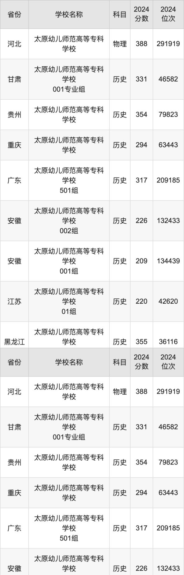 2024太原幼儿师范高等专科学校录取分数线:最低多少分能上