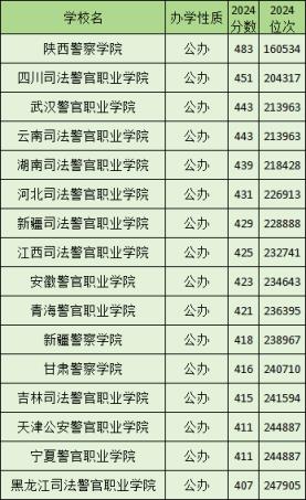 2024年全国专科警察大学录取分数线排名一览表如下: