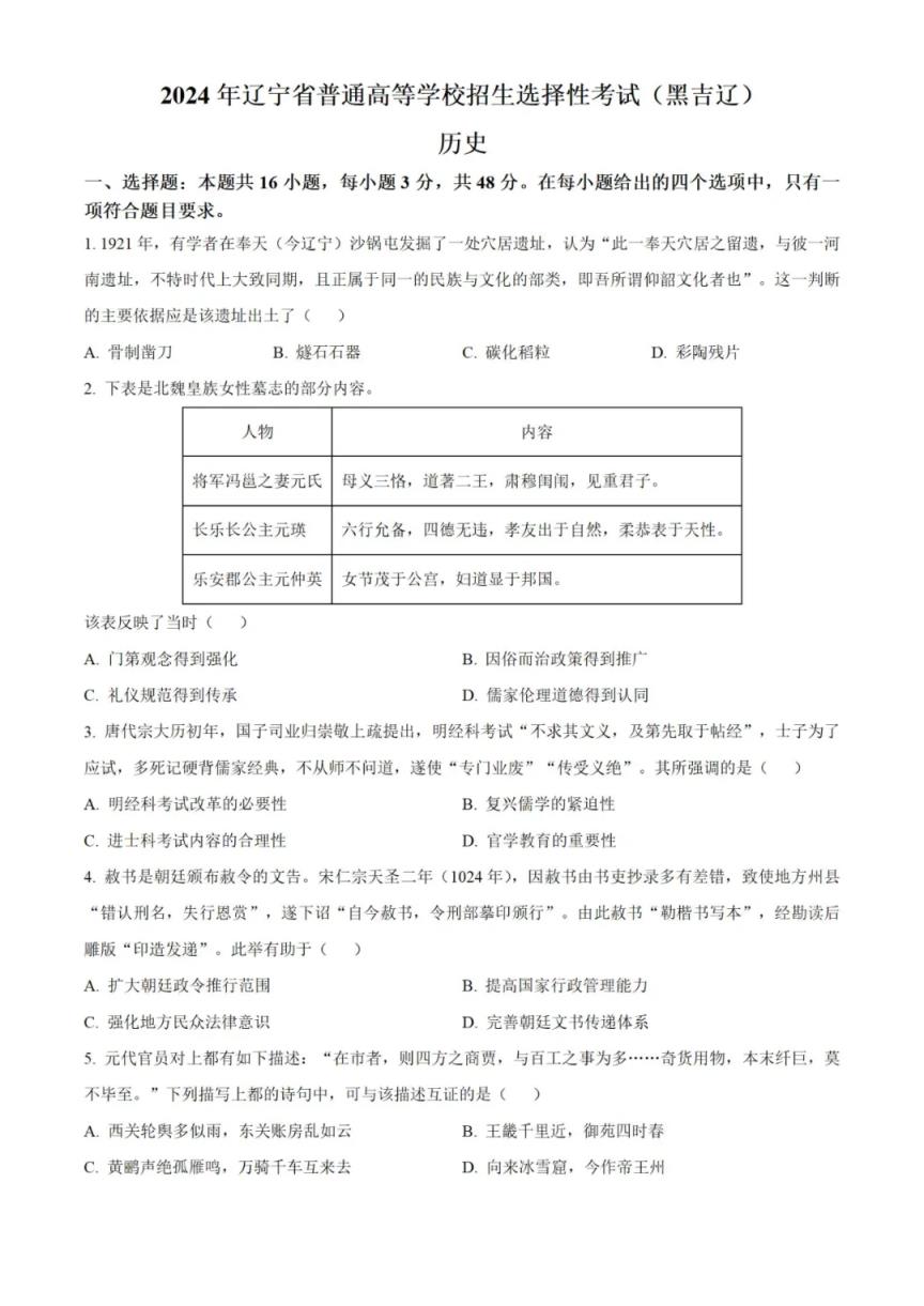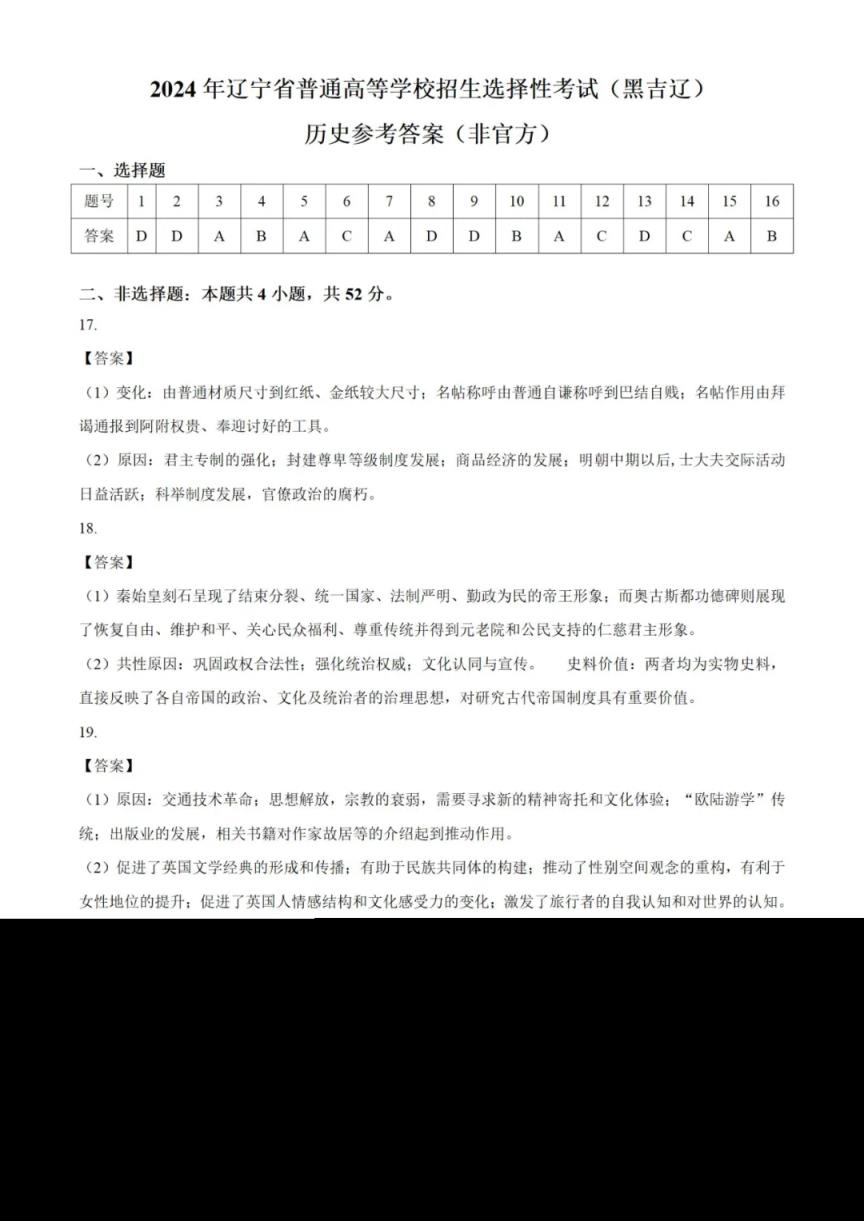 答案及试卷解析:2024年辽宁高考历史的答案及试卷真题将在考试结束后及时更新,以便大家能够及时参考估分。