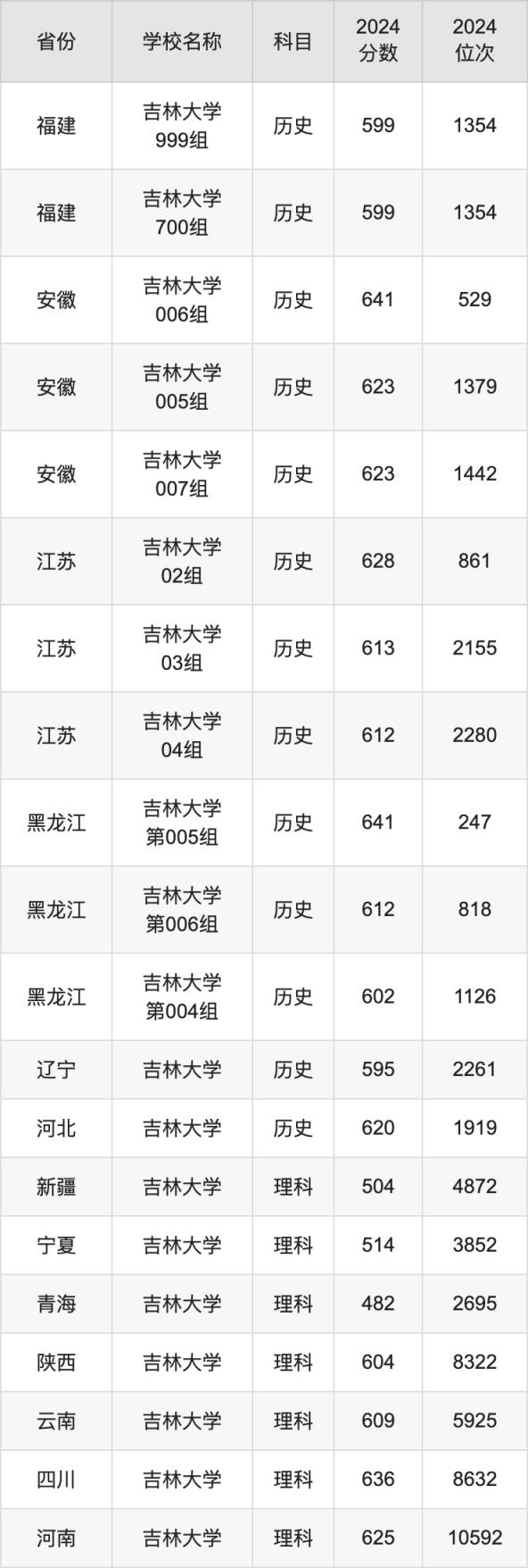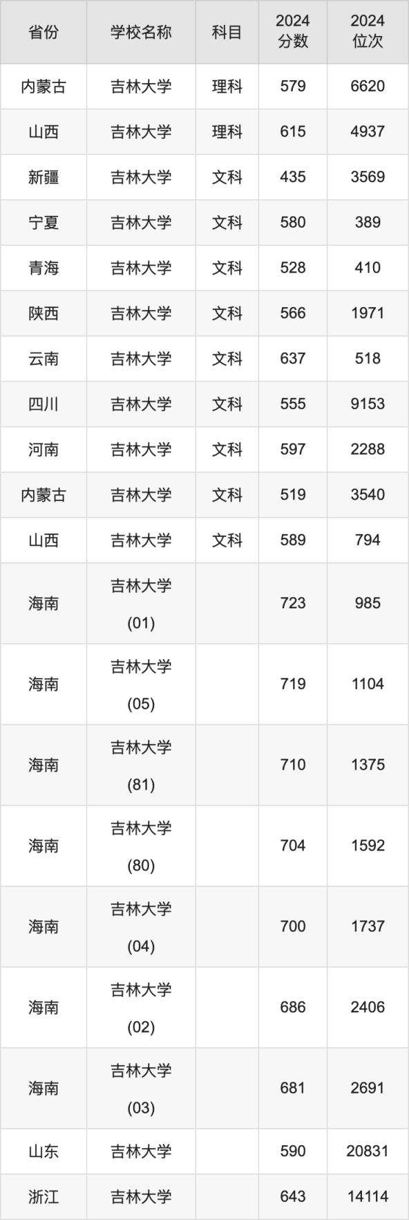 2024吉林大学录取分数线汇总:全国各省最低多少分能上