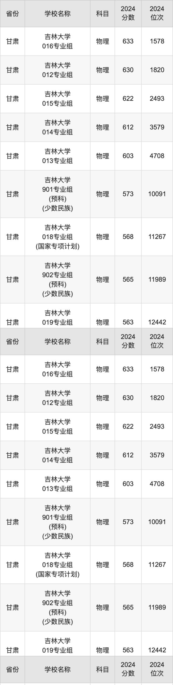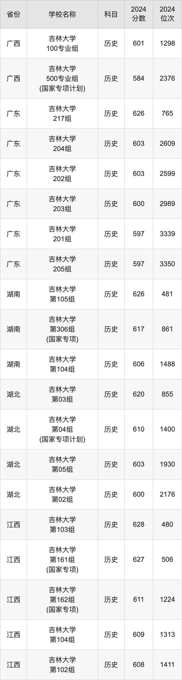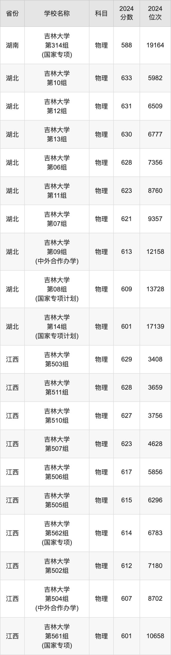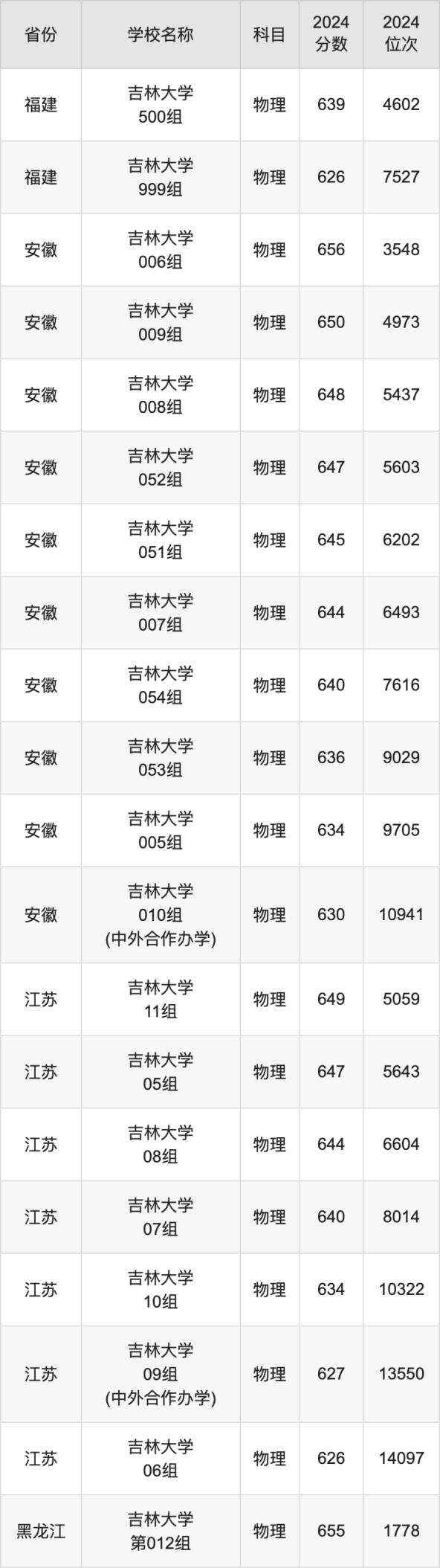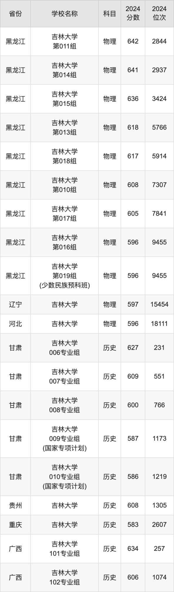 一、2024吉林大学录取分数线