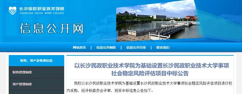 2024年7月,学校公布了《以长沙民政职业技术学院为基础设置长沙民政职业技术大学事项社会稳定风险评估项目中标公告》,这标志着该校升本事项即将进入风险评估阶段。这一举措显示了学校对升本工作的决心和实际行动。