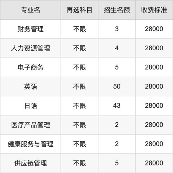 大连东软信息学院在历史组本科批招生的各个专业,每年的学费是28000元。招生人数最多的专业是英语,2024年招50人,学费是28000元。
