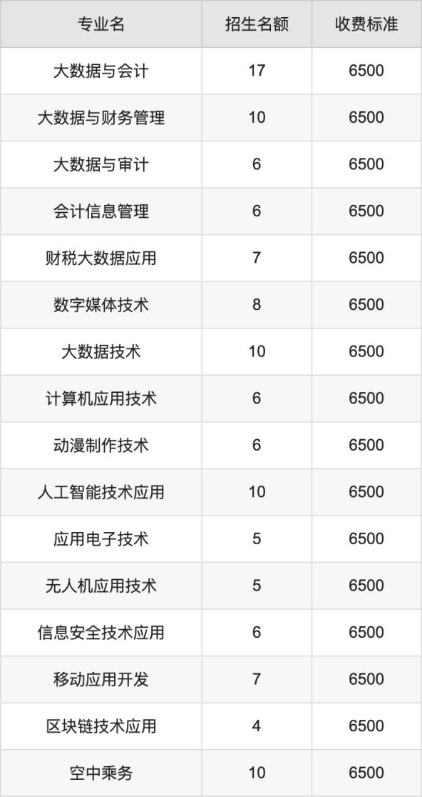 陕西财经职业技术学院理科高职专科批共计39个招生专业,各专业每年的学费是6500元。
