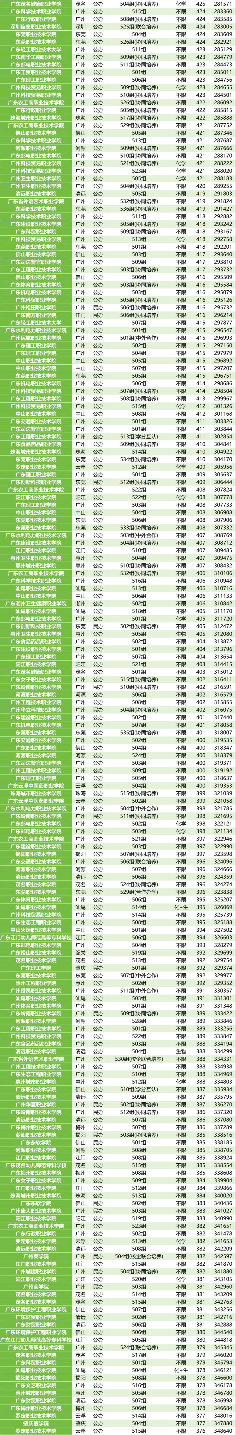 广东农工商职业技术学院506组(协同培养):最低分数为426分,位次97981。