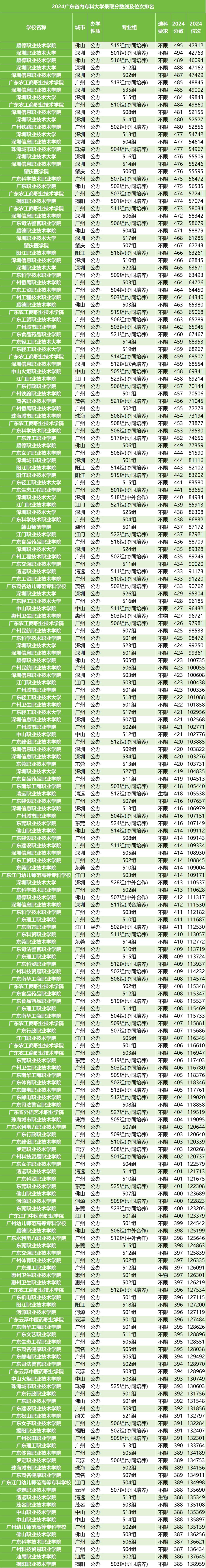 在选择院校的过程中,录取分数线和位次情况无疑是考生们最为关心的问题之一。以下是根据广东省教育厅及相关招生部门提供的数据,整理的2024年广东省大专院校的录取分数线及位次情况,供查阅。