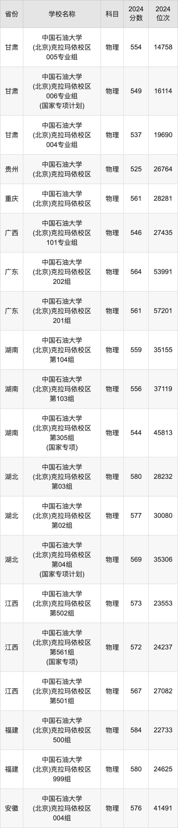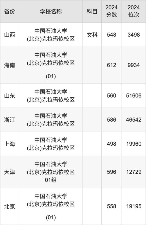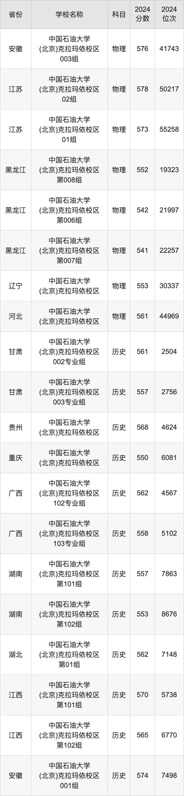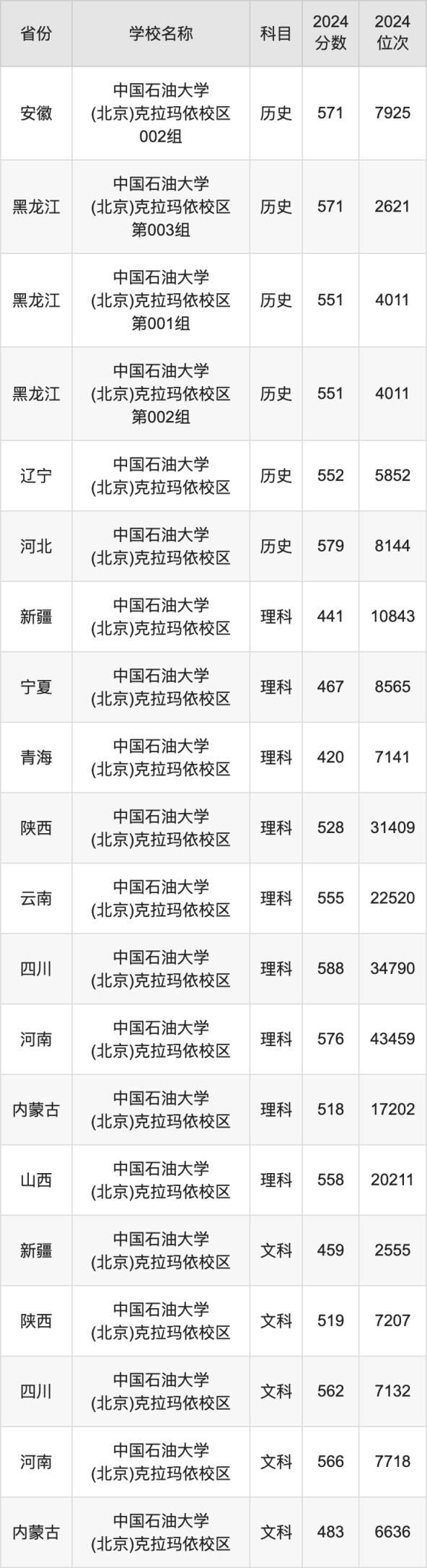 一、2024中国石油大学(北京)克拉玛依校区录取分数线