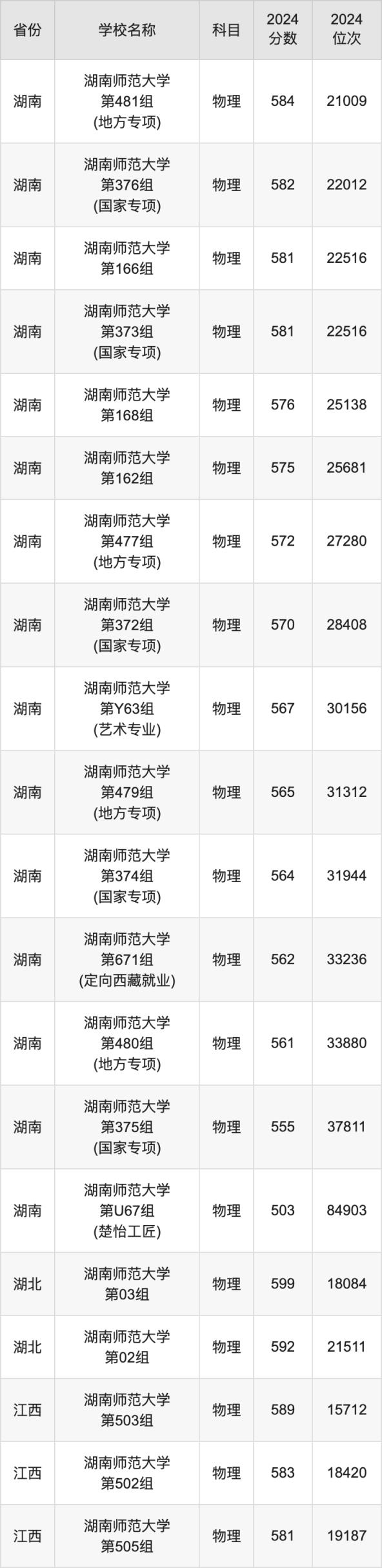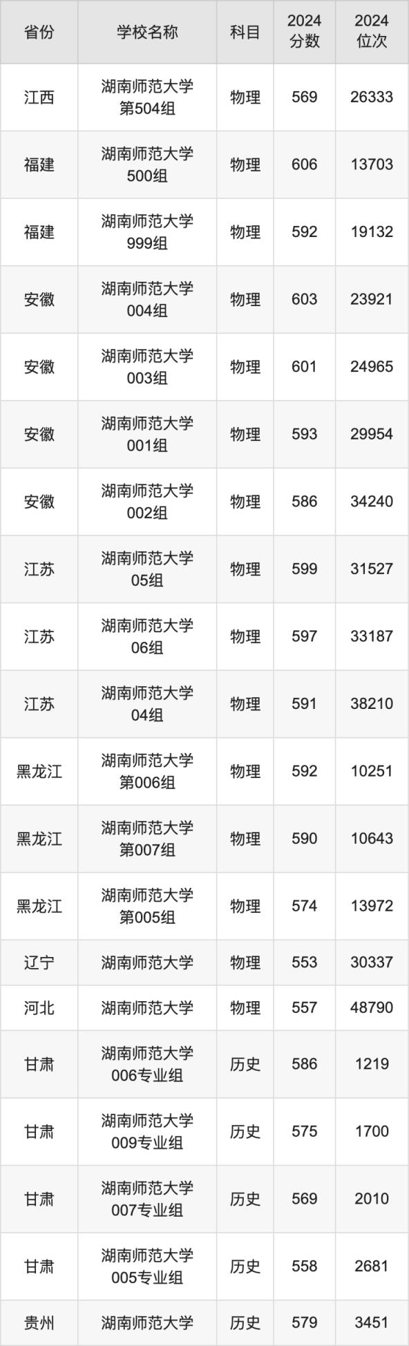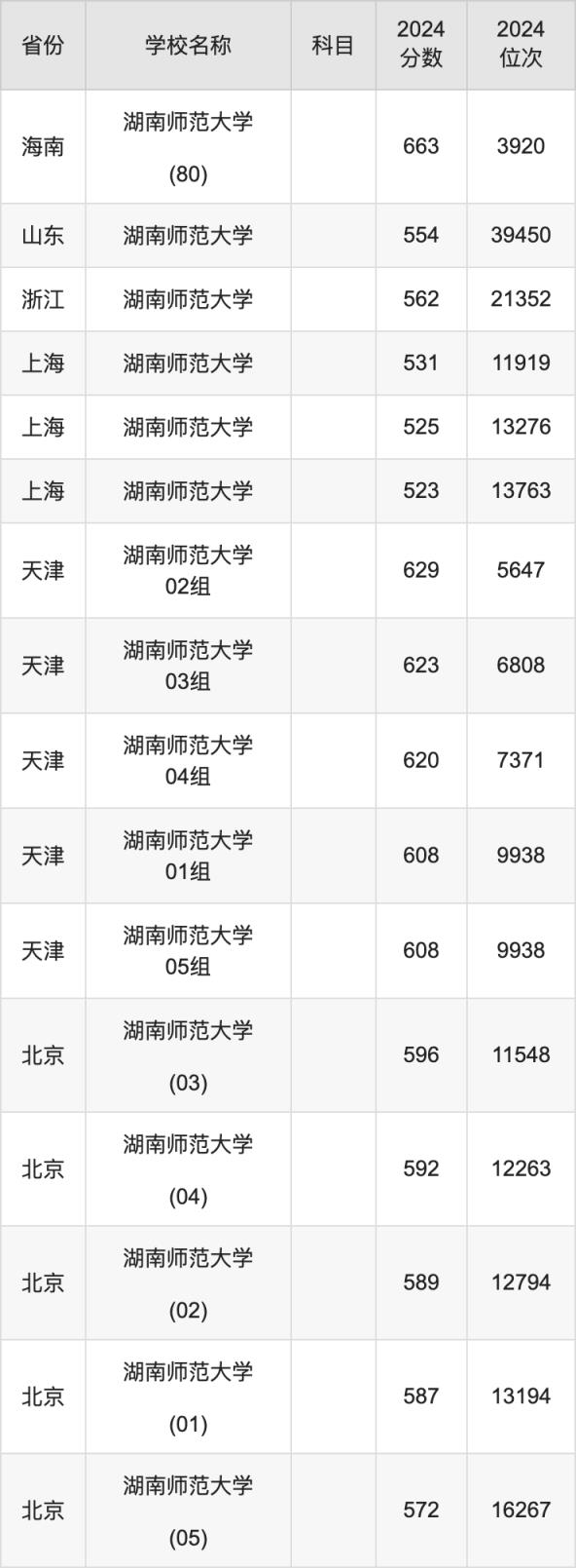 2024湖南师范大学录取分数线汇总:全国各省最低多少分能上