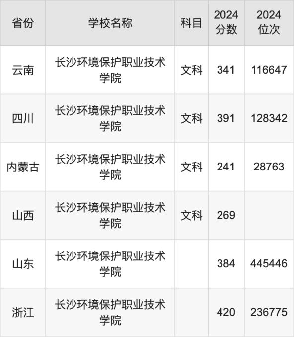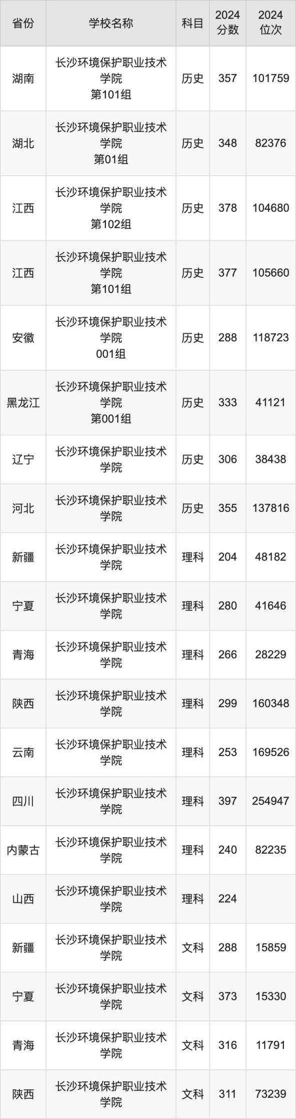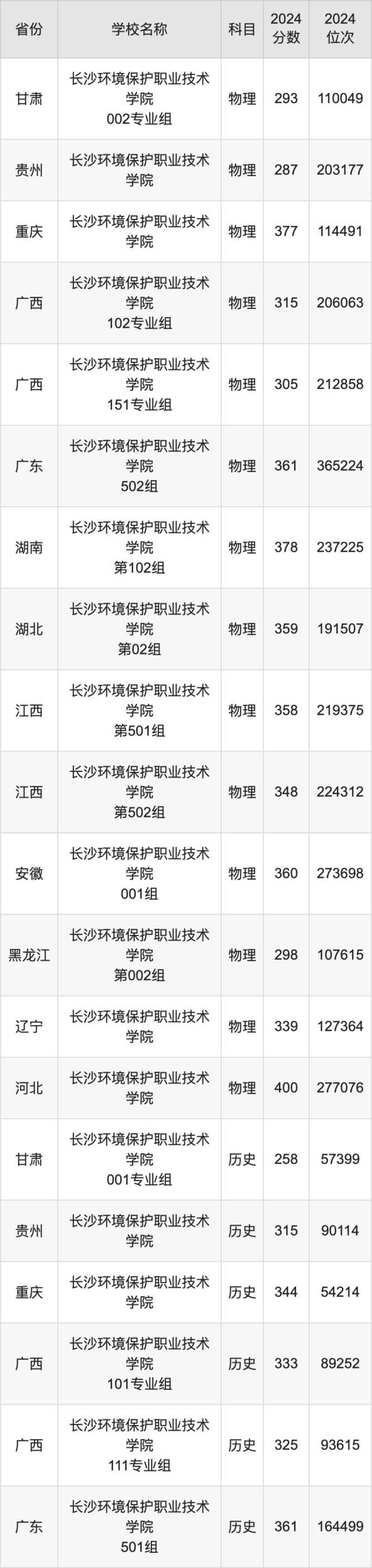2024长沙环境保护职业技术学院录取分数线:最低多少分能上