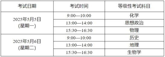 报考科目:2025年思想政治、历史、地理、物理、化学、生物学等级性考试,以及2025年6月的思想政治、历史、地理、物理、化学、生物学、信息技术合格性考试。