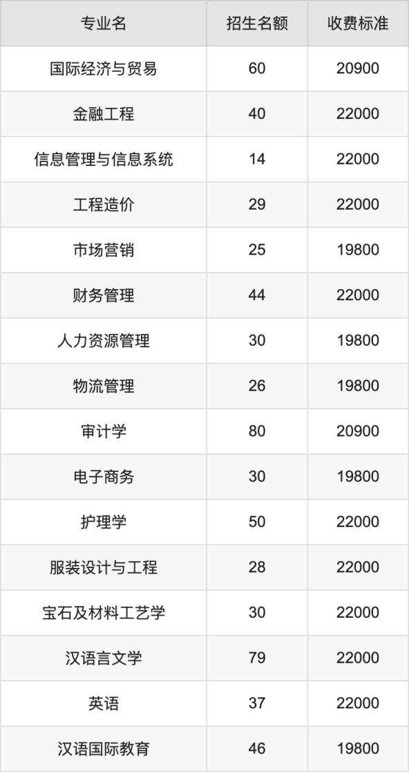 1.国际经济与贸易:学费是20900元