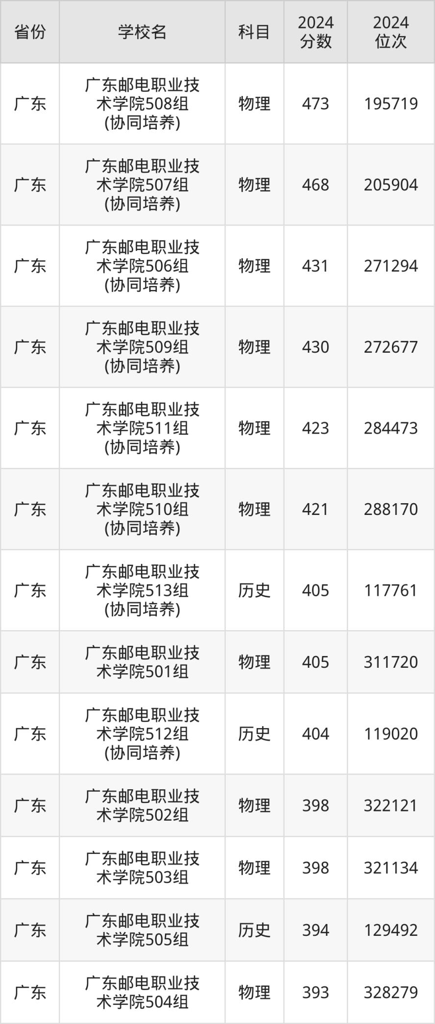 以2024年数据作为参考依据,整理广东省内考广东邮电职业技术学院要多少分。