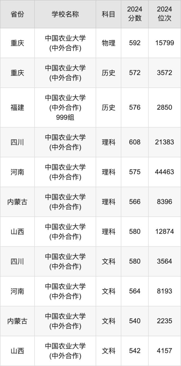 2024中国农业大学(中外合作)录取分数线:最低多少分能上