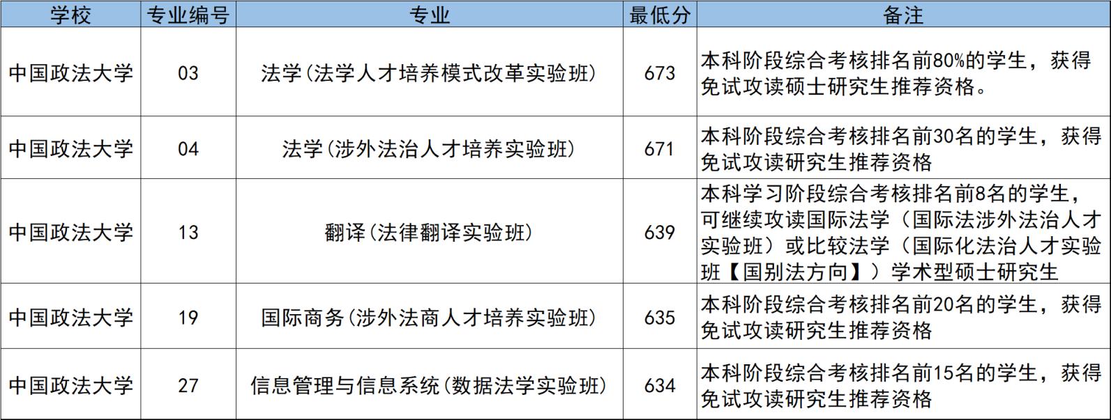 以中国政法大学为例,该校多个实验班都可获得本硕连读的资格,但推免对成绩的要求很高,相当于在学霸中挑学霸。从收分来看,不同班级分数差距比较大,但都在630分以上(2024年辽宁物理类)。