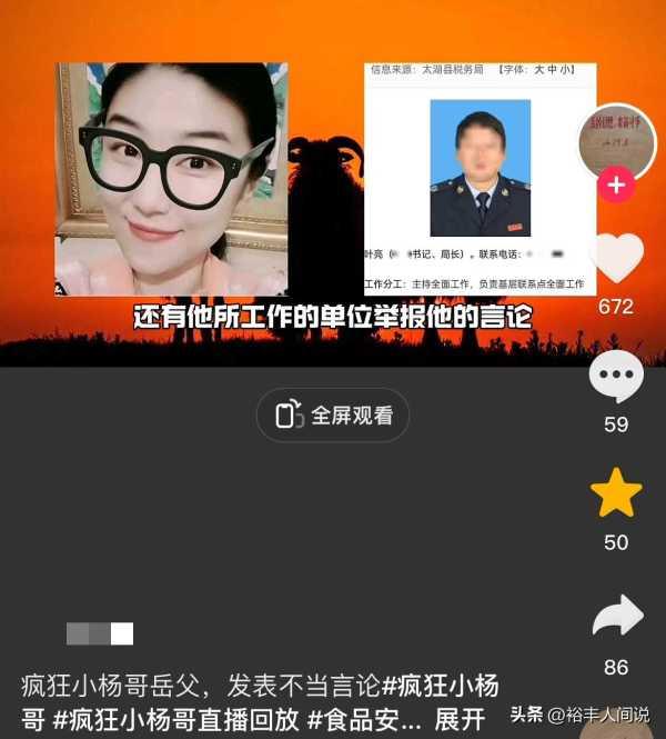 小杨哥岳父被实名举报!涉嫌发表不当言论