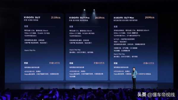 小米SU7三款版本配置,售价分别为21.59万元、24.59万元和29.99万元。价格一经发出,根据小米汽车官方发布的海报,预定仅27分钟,小米SU7的大定数量已突破50000辆,5000辆创始版也已经售罄。