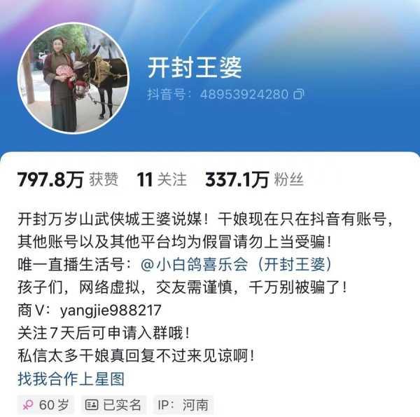 通过第三方平台查询数据发现,“开封王婆”账号3月15日粉丝量为23.1万,截至发稿前,开封王婆抖音粉丝达337.1万。13天时间涨粉314万。