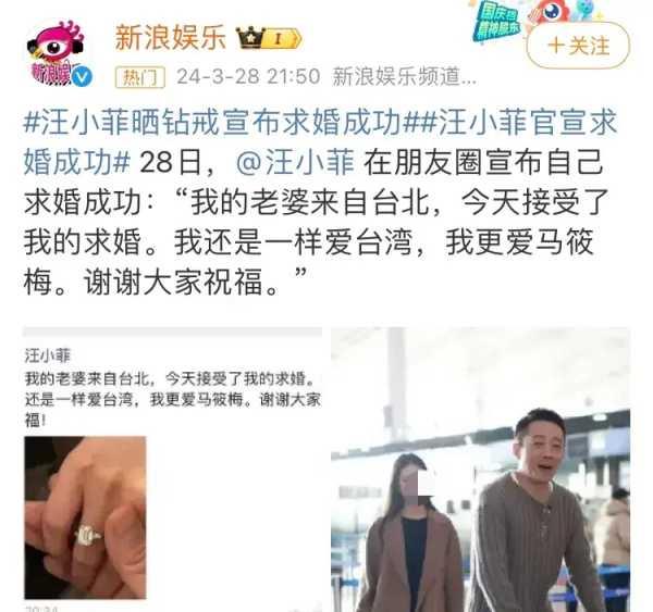 3月28日晚,据多家娱乐媒体报道,知名企业家汪小菲先生在朋友圈官宣求婚成功,消息一出,获得了不少网友的关注和热议。