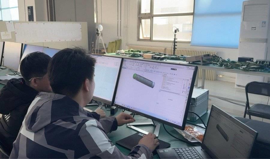 箭元科技工作人员展示试验火箭头段的货运仓。