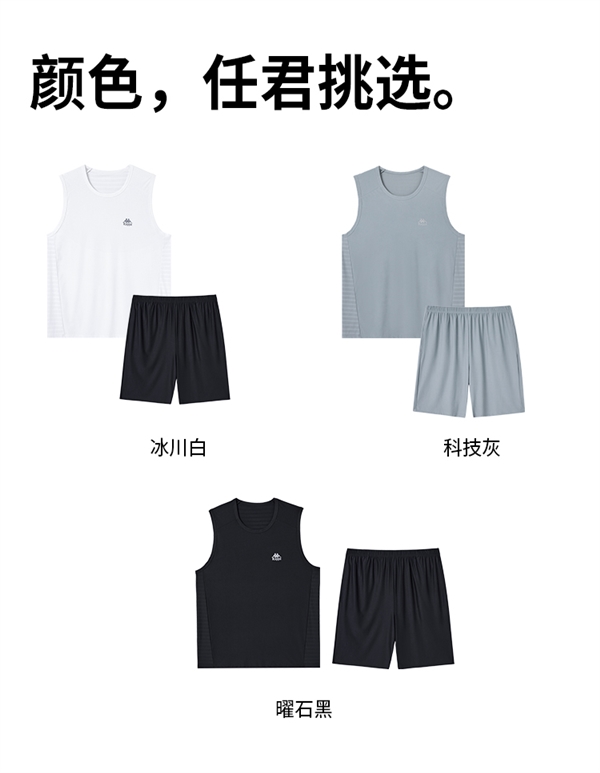 速干透气一整天!Kappa男士冰丝背心/套装官促:59元起