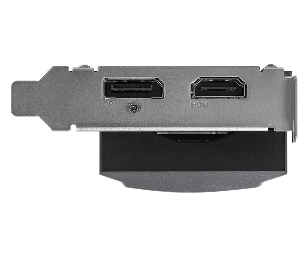 核心频率最高1.1GHz,4GB显存频率6GHz,接口一个HDMI 2.0、一个DP 1.4,最高输出分辨率5120 x 2880/60Hz,附送全高挡板。