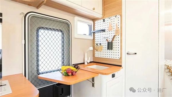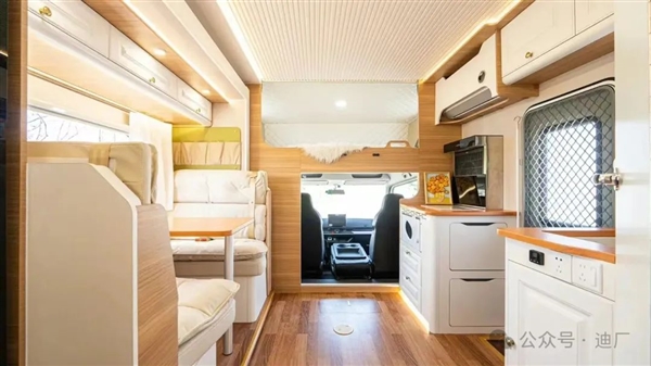 车内各种电器设施一应俱全,包括冰箱、空调、烤箱、暖风机、洗衣机等,只要你愿意,完全可以长期居住在车上。