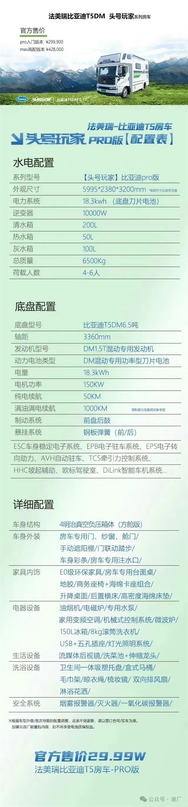 4月1日消息,近日,江苏省淮安市安迪体验中心举办了比亚迪T5轻卡集体交车仪式,同时基于比亚迪首款混动房车专用底盘打造的房车也正式发布交车,推出PRO版和MAX版两款配置,售价分别为29.99万元和42.8万元。