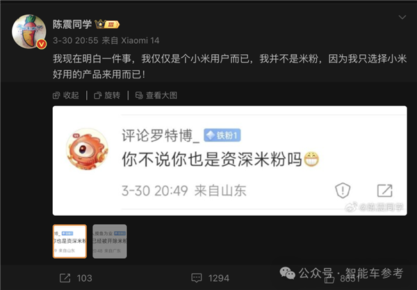 然而这次对线后,陈震表示明白了自己不算米粉,因为他只认可小米好的产品。
