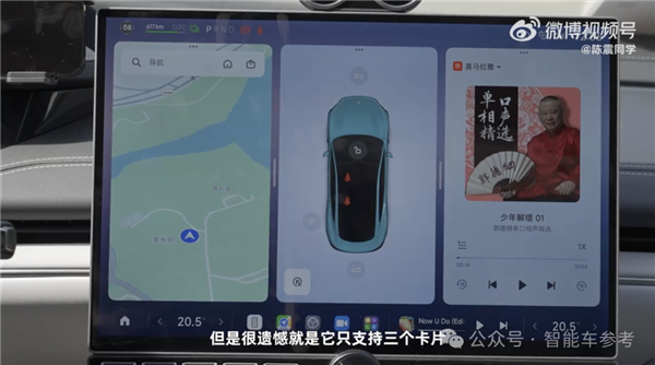 中控最多只能支持三个卡片,不能像理想那样来回划。