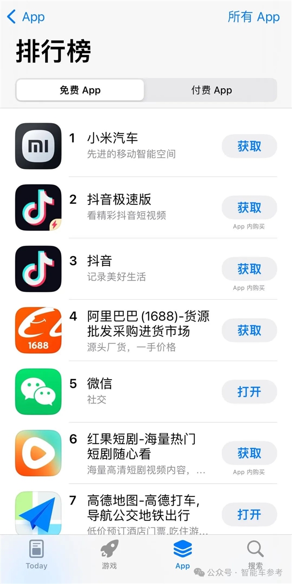 小米汽车官方APP直接登顶苹果App Store下载榜,碾压一众社交生活软件。