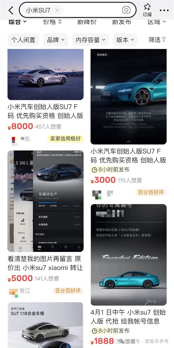 甚至二手物品交易平台闲鱼上已经出现了转卖创始版订单,还有加价转卖、代抢的情况。